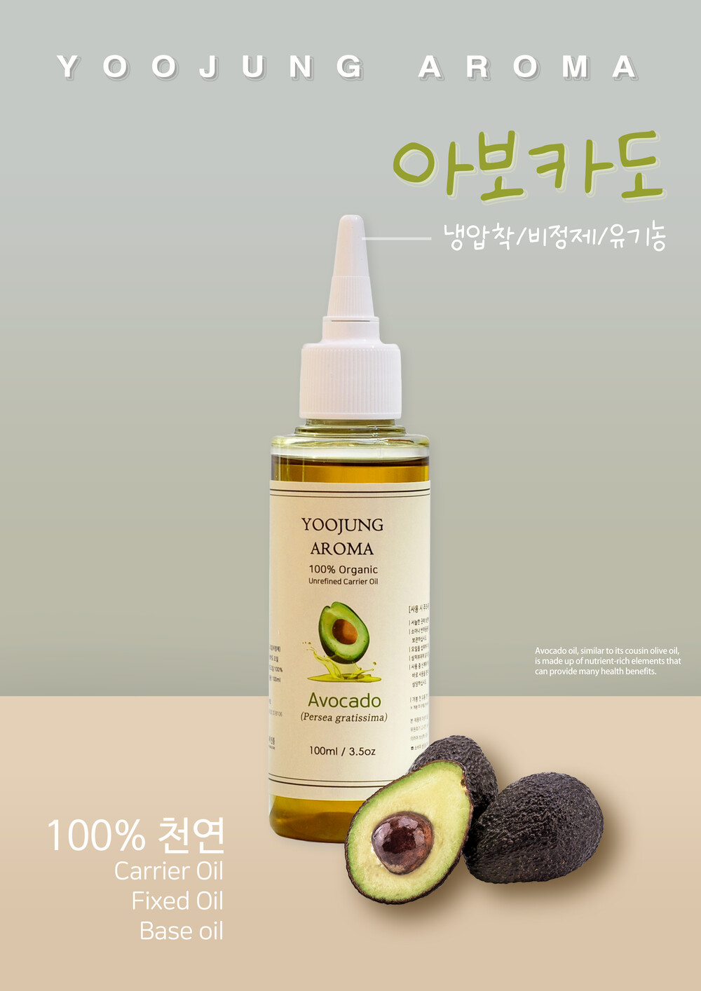 아보카도는 "숲속의 버터"라고 불릴만큼 건강한 지방 함량과 풍부한 칼륨, 지용성 비타민 A, D, E, K의 흡수를 돕는 등 영양이 풍부한 과일입니다. 냉압착 방식으로 추출된 버진 아보카도 오일은 엽록소와 카로티노이드가 풍부하기 때문에 짙은 녹색을 띄며 침전물이 생길 수 있습니다. 아보카도 오일은 단일불포화지방산인 올레산이 풍부하기 때문에 날씨 변화에 의해 손상된 피부나 건조한 피부에 영양을 주고 촉촉하게 유지하는 데 도움이 될 수 있습니다.